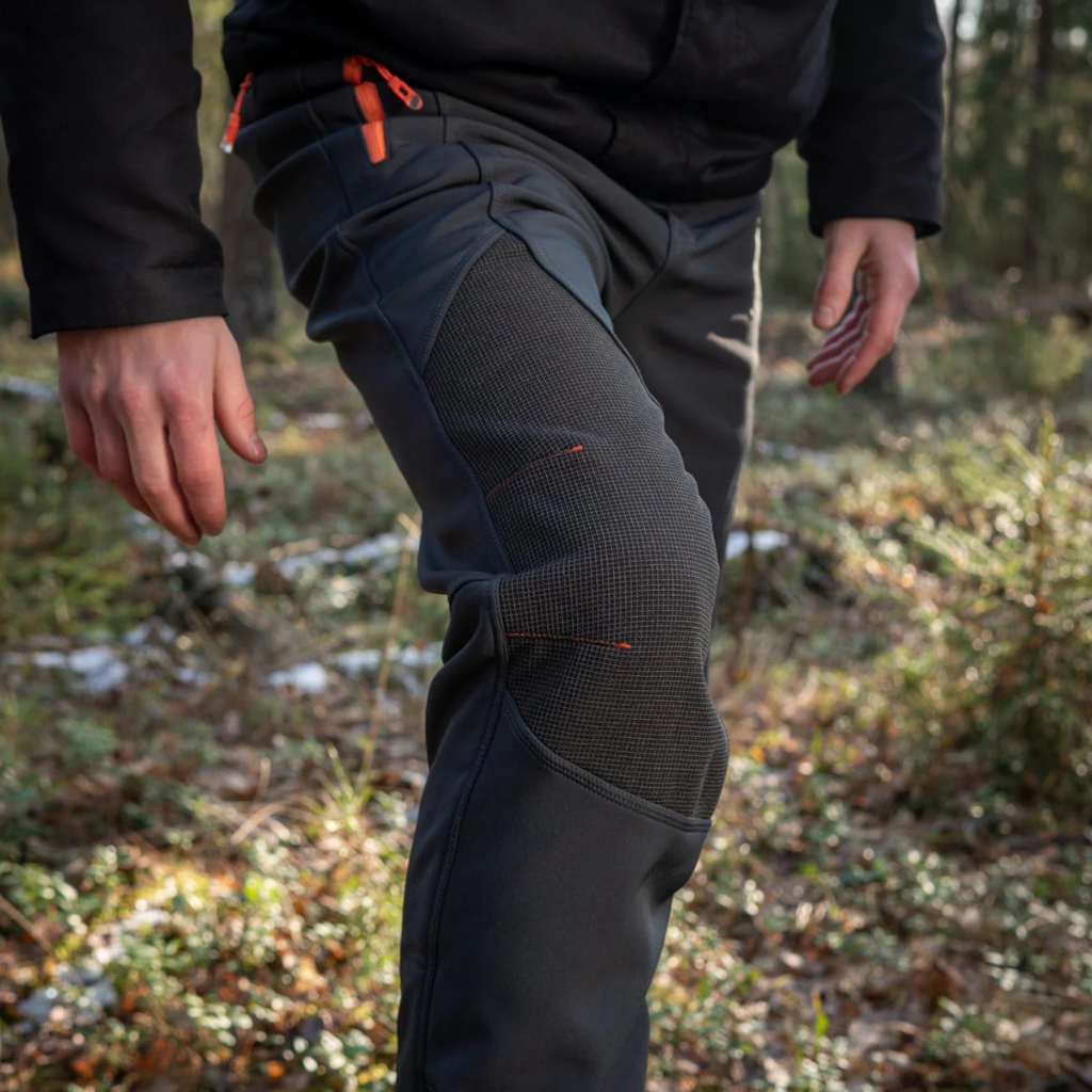 Not at all. The reinforced panels are flexible and ergonomically shaped, so they protect high-wear areas without restricting movement. Whether you’re hiking, kneeling or climbing, the trousers move with you naturally.